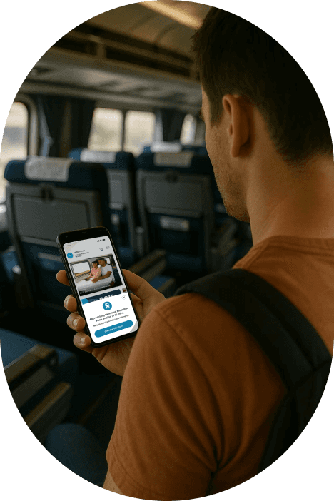 Upon arrival, travelers receive tailored notifications about services at their destination station. A feedback survey completes the experience, creating a continuous improvement loop.