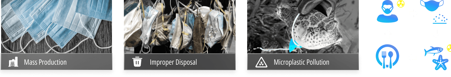 The global face mask market surged in 2020 due to the pandemic, with sales increasing 100-fold from 2019. However, improper disposal of masks has caused severe environmental issues, with 1.56 billion masks discarded in oceans, leading to microplastic pollution that takes 450 years to degrade and threatens marine ecosystems and human health.